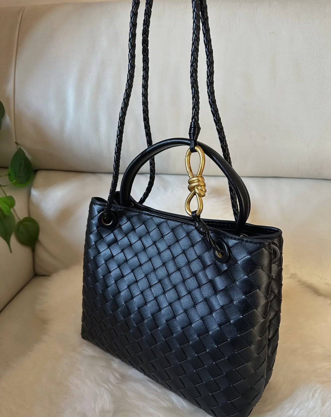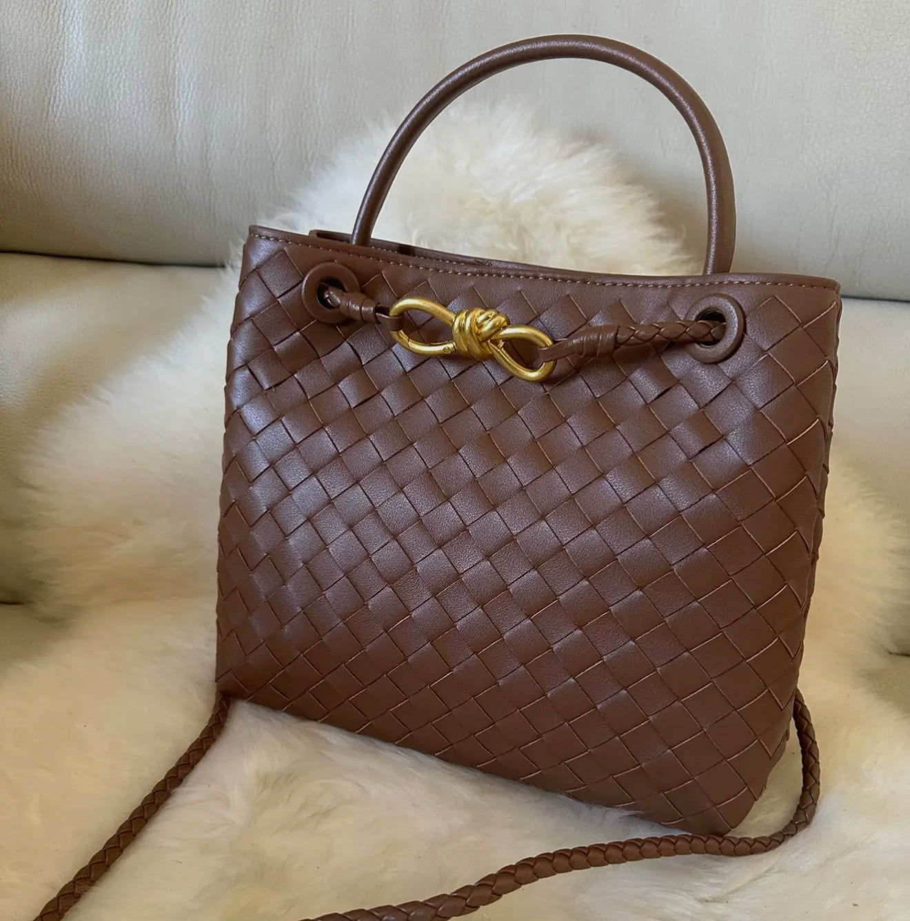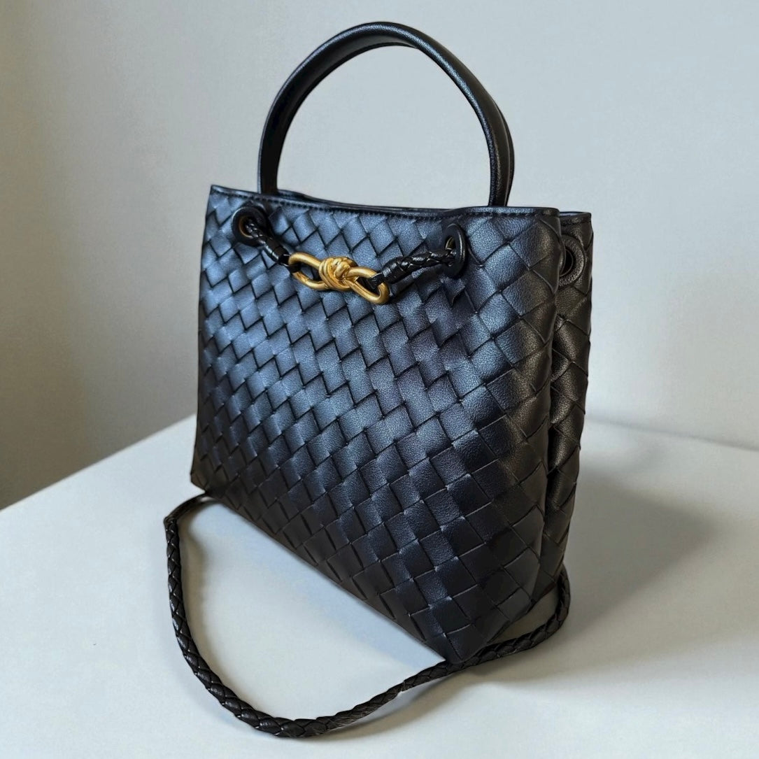 Handcrafted woven genuine leather bag. Can be carried on the shoulder, crossbody, or by hand. A very versatile bag that suits many occasions, with a magnetic closure and a single compartment inside, featuring a zippered pocket.