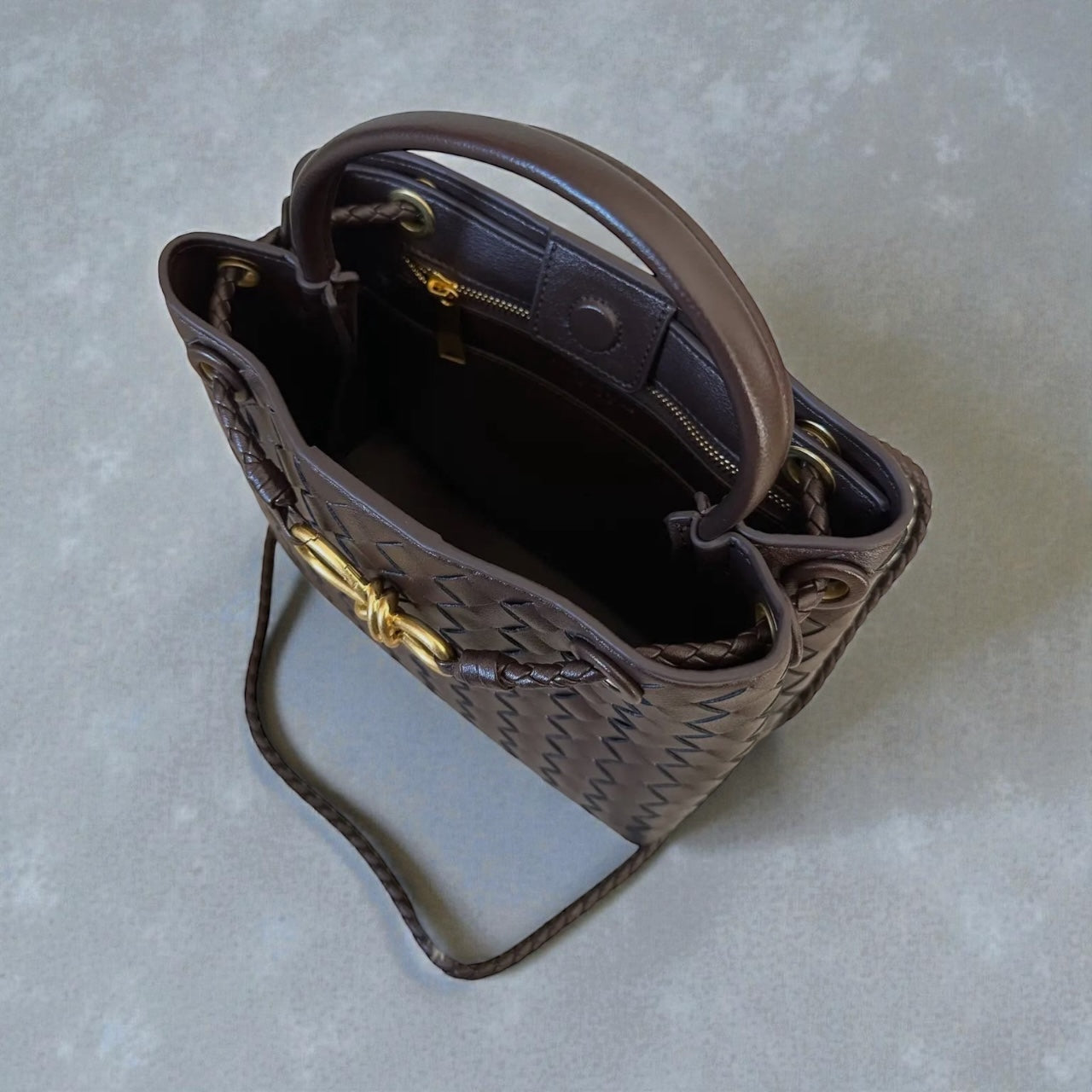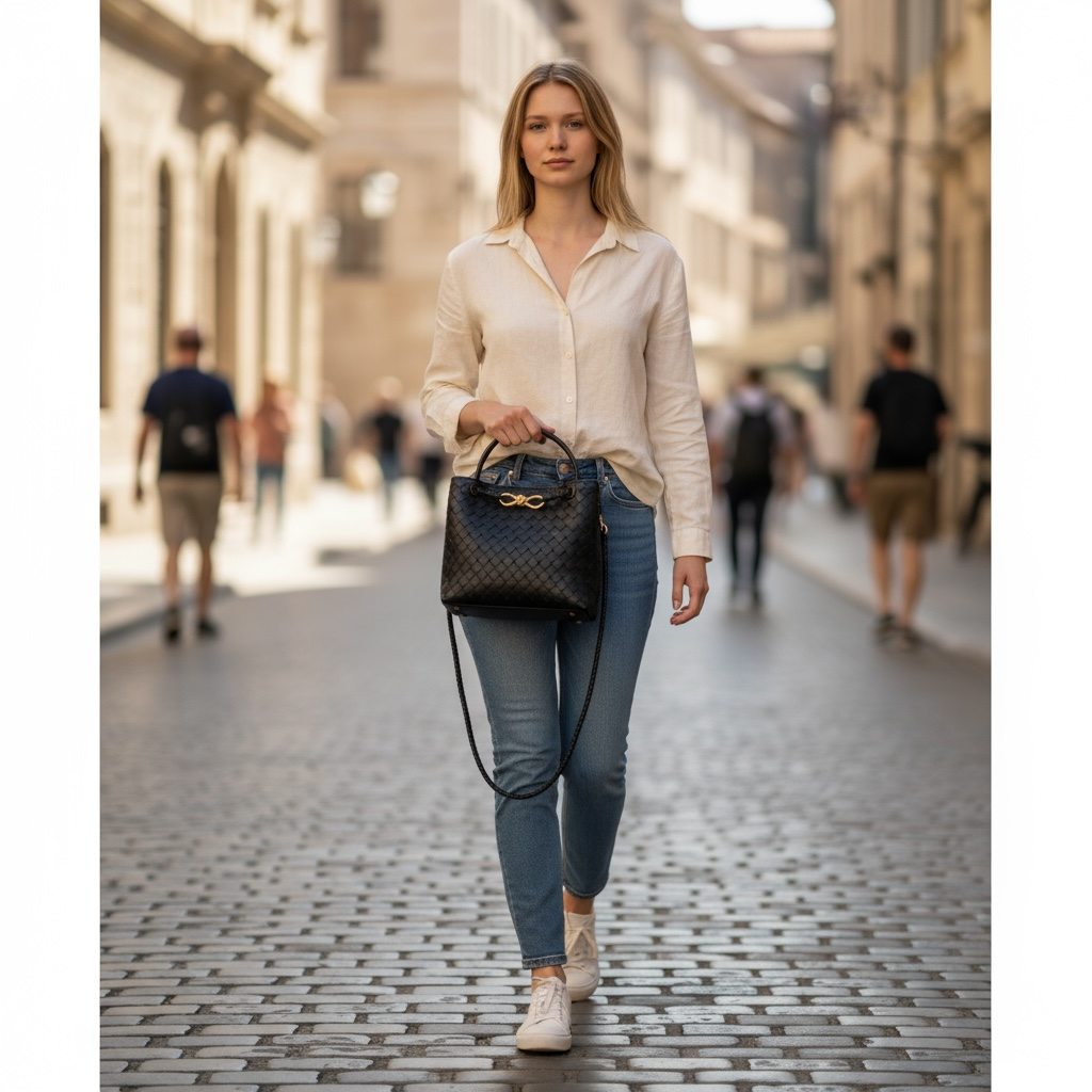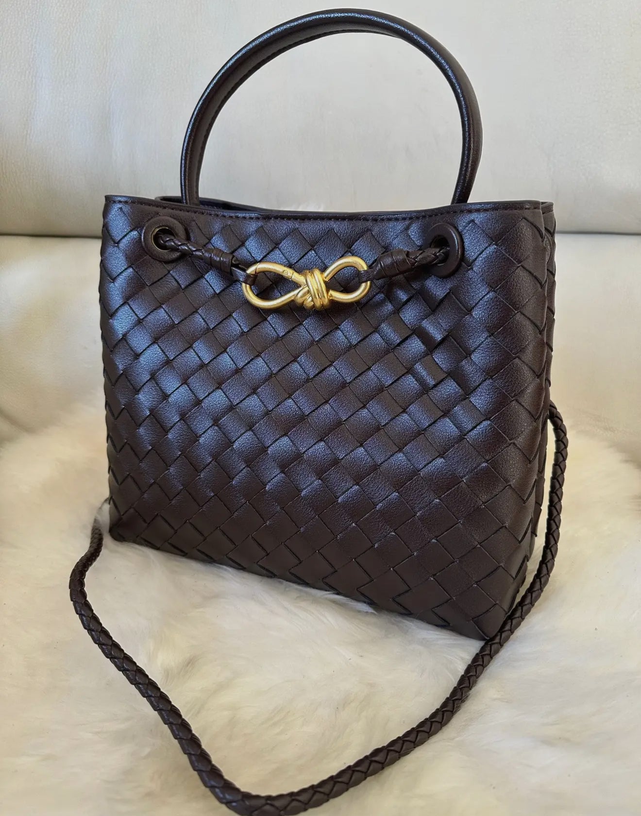 Handcrafted woven genuine leather bag. Can be carried on the shoulder, crossbody, or by hand. A very versatile bag that suits many occasions, with a magnetic closure and a single compartment inside, featuring a zippered pocket.